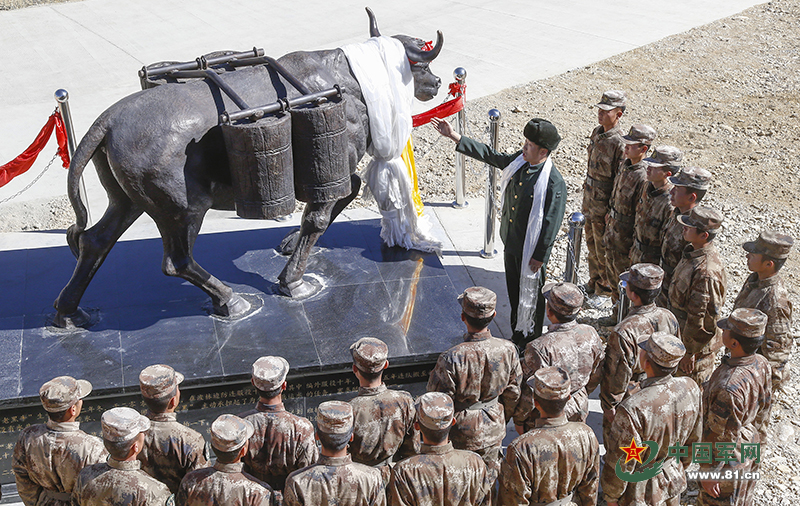 11月29日,驻守在西藏阿里高原的波林边防连组织退伍老兵们举行“告别无言战友”仪式。退伍老兵在无言战友老黑牛雕塑前,为连队官兵最后一次讲述老黑牛的感人故事,为老黑牛墓碑描红等,以此向长眠于此的无言战友老黑牛告别。