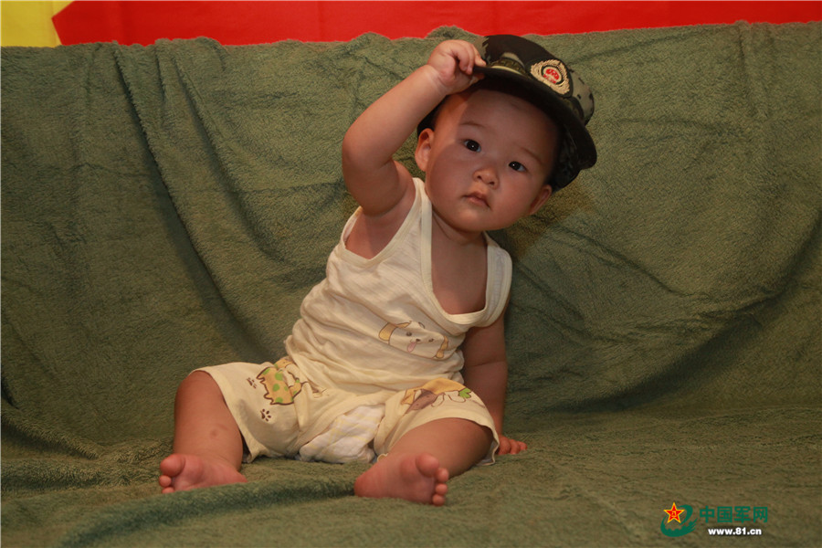 一组军娃萌照,看军爸给宝贝花式拍摄“从军照”