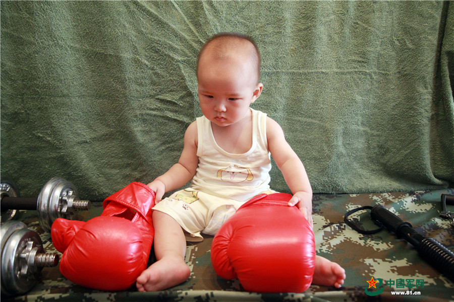 一组军娃萌照,看军爸给宝贝花式拍摄“从军照”