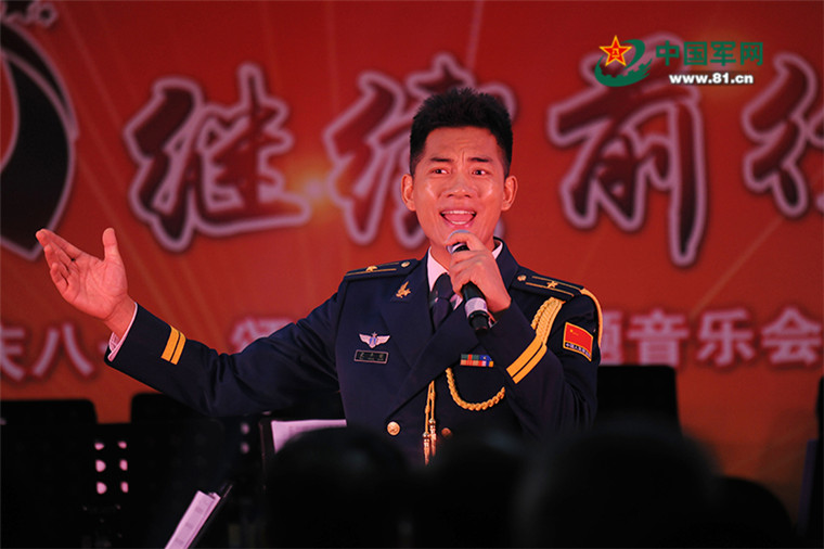 北京市西城区“庆八一歌颂祖国主题音乐会”现场,男生独唱《小白杨》。彭希摄