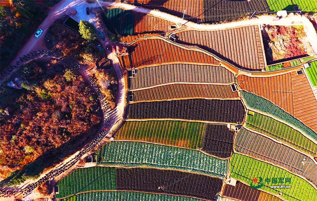 武警某部组织新兵进行冬季野营拉练。这是航拍新兵野营拉练队伍。任贵摄