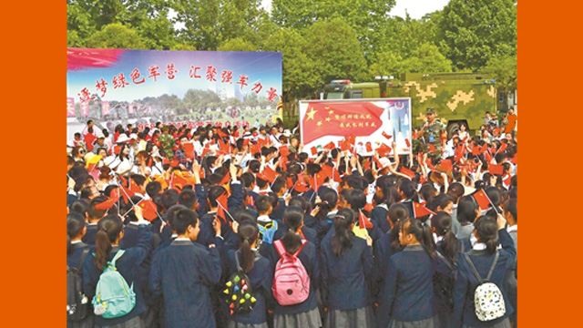 6月1日,火箭军某基地驻地1500余名中小学师生,分批走进该基地某团营区,参加“走进火箭军、共筑强军梦”主题军营开放日活动。军营