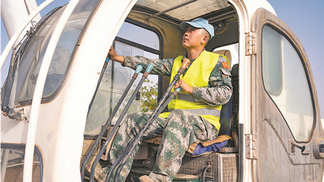 在官兵眼中,马子栋是一名沉着干练、经验丰富的吊车操作“大拿”。进驻任务区5个多月来,他已吊装集装箱200多个,成为分队吊装量最大的人。维和