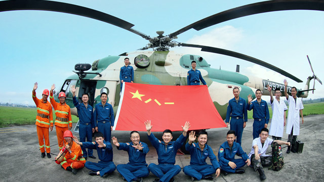 八一建军节来临之际,西部战区某陆航旅官兵和战鹰一起“凹造型”送祝福。八一