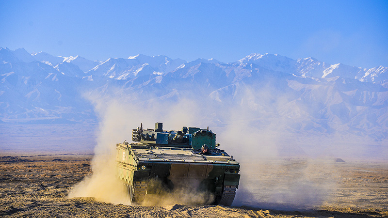 近日,祁连山下寒风刺骨、呵气成霜,但第76集团军某合成旅野外综合训练却是一派火热景象。
