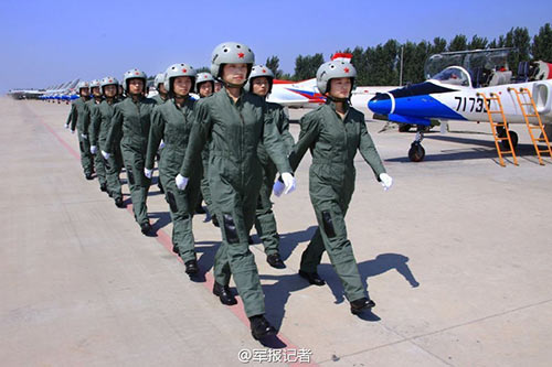 “我爱祖国的蓝天,晴空万里阳光灿烂。白云为我铺大道,东风送我飞向前。金色的朝霞在我身边飞舞,脚下是一片锦绣河山”。中国空军歼击机女飞行员队伍正在不断壮大。
