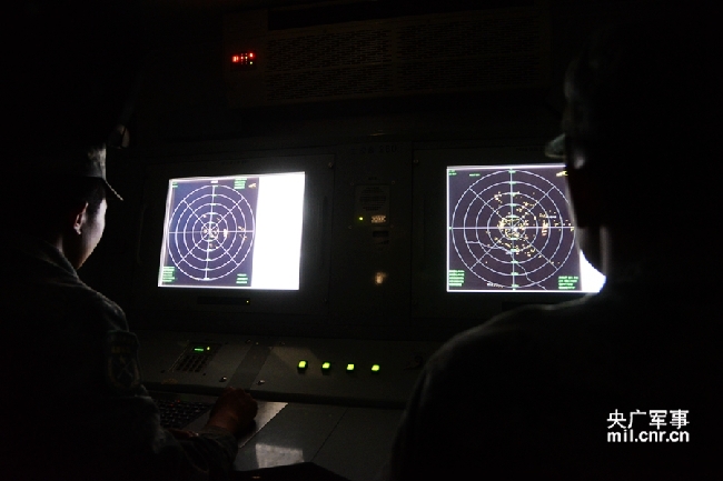 记者看到“蓝军”不间断利用敌高空侦察机对“红军”实施高空侦察,“红军”无线电台受敌干扰,迅速进行抢修,启用隐蔽网络,随即“蓝军”小编队连续攻击“红军”被掩护目标和防空阵地,“红军”指挥员按空情情况分析研判立即进行反击。
