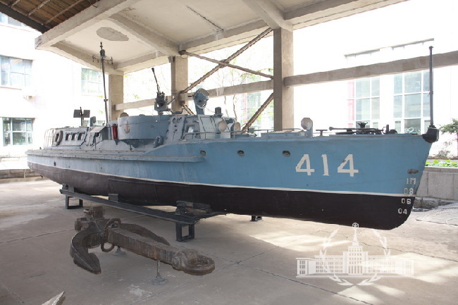 此艇原为国民党海军的江防炮艇,1949年随国民党海军第二舰队起义,后编入人民解放军海军部队,命名为414炮艇。此艇在保卫祖国海防战斗中,多次建立战功。1950年7月10日,在浙江技山海战中,该艇人员机智勇敢,先用艇艏撞击国民党军大型木壳炮艇“新宝顺”号,然后将其击沉。1951年6月23日夜间,该艇在抗行护渔护航任务中,在浙江省头门山海域附近与国民党军舰艇遭遇,单艇奋勇冲入舰群,与四艘敌舰激战。由于全艇人员英勇顽强,机动灵活。打乱了国民党军舰队形,击沉、击伤国民党军舰艇各1艘。保护了900多艘渔船和3艘货船的安全。为此被上级授予“头门山海战英雄炮艇”荣誉称号。