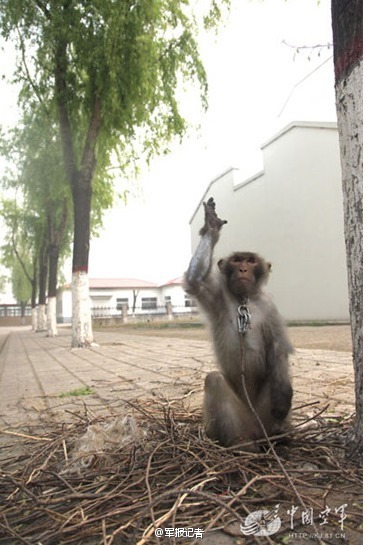 每个清晨,驱鸟兵都会早早奔赴机场,正在进行开飞前必不可少的驱鸟工作,为战机升空创造净空环境。他们还有可爱的驱鸟小伙伴——猴子。