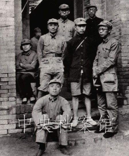 1937年:邓小平与部分政治工作干部在红军胜利到达陕北后在旬邑县的合影