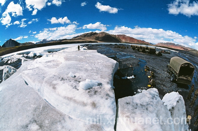 1994年8月 ,喀喇昆仑山脉 。新疆军区“高原劲旅”在海拔6100米处安营扎寨,进行生存训练。