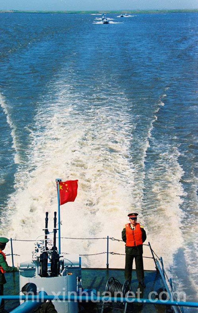 2001年5月,黑龙江省军区巡逻艇大队在中俄界江巡逻。