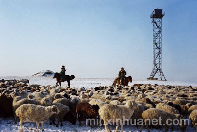 1979年3月,内蒙古军区边防某部战士,在中蒙边境达茂旗满都拉地区武装护牧。