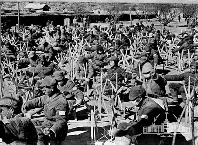 延安部队生活――纺线。