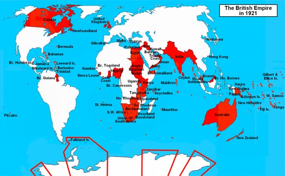 麦克唐纳纠正了这种倾向。他不反对贸易或全球化,也不主张搞保护主义。他以一位历史学家的眼光看待这个话题,或许因为他曾很长时间是一名投资银行家,这种职业生涯使得他看待问题的态度很冷静。他只不过试图看清真实的世界并将之清楚地描述给读者。图为全盛时期的大英帝国,其殖民地遍布全球五大洲。
