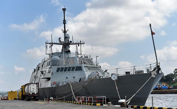 我们的境况因此会怎样?麦克唐纳大胆引用自己的证据和逻辑。他指出,目前美国的对外政策总的来说是遏制俄罗斯和中国,而且主张把两国引向西方的安全框架内。他还力主某些公认的南中国海自然资源区域共享。这两个都是好主意,但并不新鲜,因此给人的感觉是有些像硬塞进去的一样。图为2015年2月17日,美国濒海战斗舰“沃斯堡”号停靠新加坡。有媒体评论,美军将新锐战舰部署亚太,对华防范意图明显。