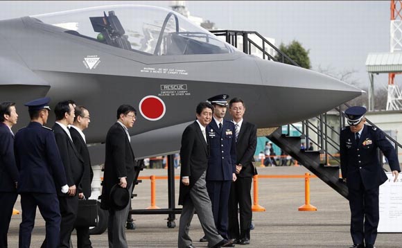 摇摆不定的民族主义中产阶级作为政治力量不应被低估。他们往往觉得自己比地位较低的社会阶层重要。这就可以解释为何全球处于底层50%的人的收入大幅增长似乎没有多大直接的政治效用。图为2014年10月26日,日本首相安倍晋三在茨城县小美玉市的航空自卫队百里基地出席自卫队成立60周年航空阅兵式,为此日方还展示了准备引进的美制F-35战机全尺寸模型。