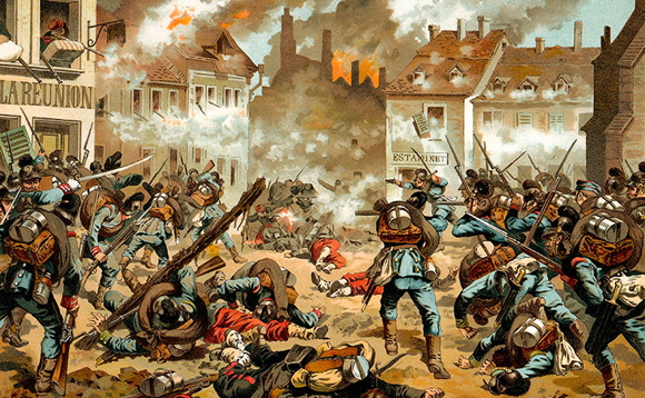 大多数国家就没那么幸运了。麦克唐纳在书中精彩地描述了法国和德国为获得铁和煤炭资源而进行的竞争。在许多方面,欧洲自己就是从19世纪中叶到第二次世界大战爆发血腥冲突的根源所在。他也对日本做了同样的描述,日本对中国东北(铁矿石和煤,征服从1931年开始)和东印度群岛及马来半岛(石油、橡胶、锡,时间在1941年)的资源垂涎三尺。还有,正如在工业化过程中,像英国和法国这样一些行动早的国家,某种程度上已为自己建立了优势。而像日本、意大利和德国这样一些雄心勃勃的工业大国后来才加入帝国“游戏”竞赛,但强烈希望消除英国、法国和美国的抢先优势。为资源而战在欧洲近现代史上屡见不鲜,法国就曾因战败而被迫向普鲁士(德国)割让煤铁产区阿尔萨斯和洛林。图为描绘普法战争时期色当战役的画作。