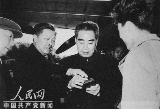 周恩来、贺龙、聂荣臻观看胡祖荣夺得的金牌