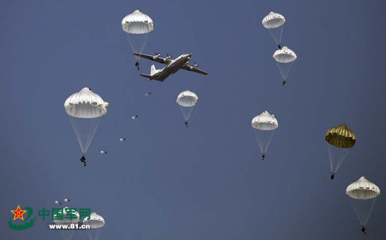 新时期,部队训练走向以中、大型运输机跳伞为主。王海涛摄