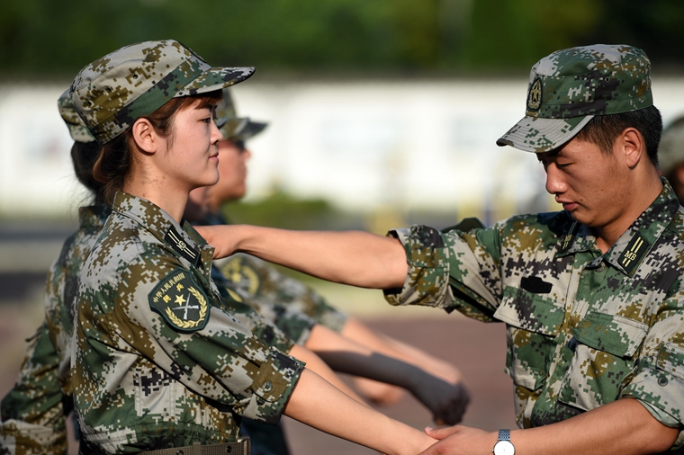 近日,安徽合肥市大圩镇成立女子民兵排,首批32名女民兵大多是大学生村官及乡镇工作岗位上的“90后”姑娘。在积极投身国防建设的同时,女子民兵排的32名姑娘还将开展志愿服务等活动。