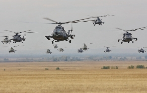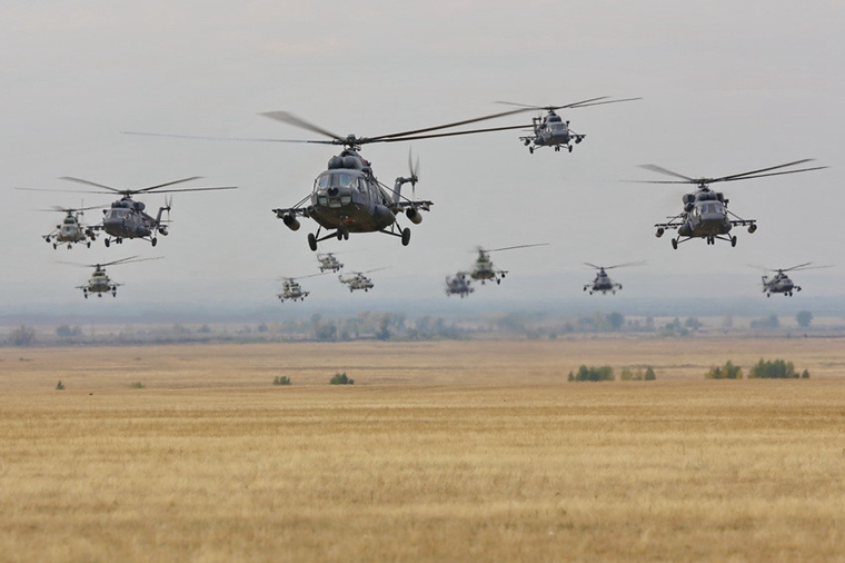 俄罗斯军队对直升机部队非常重视。近年来,不断为直升机部队更新装备。同时,部队也积极利用这些新装备,苦练实战能力。近日,俄军在代号“中央-2015首长司令部战略演习”中调派了50多架米-8MTV、米-8AMTSH运输直升机及米-35攻击直升机组成突击群进行空中奔袭演练。