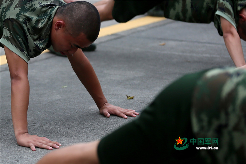 10月13日,新兵小鲜肉正在进行俯卧撑体能竞赛