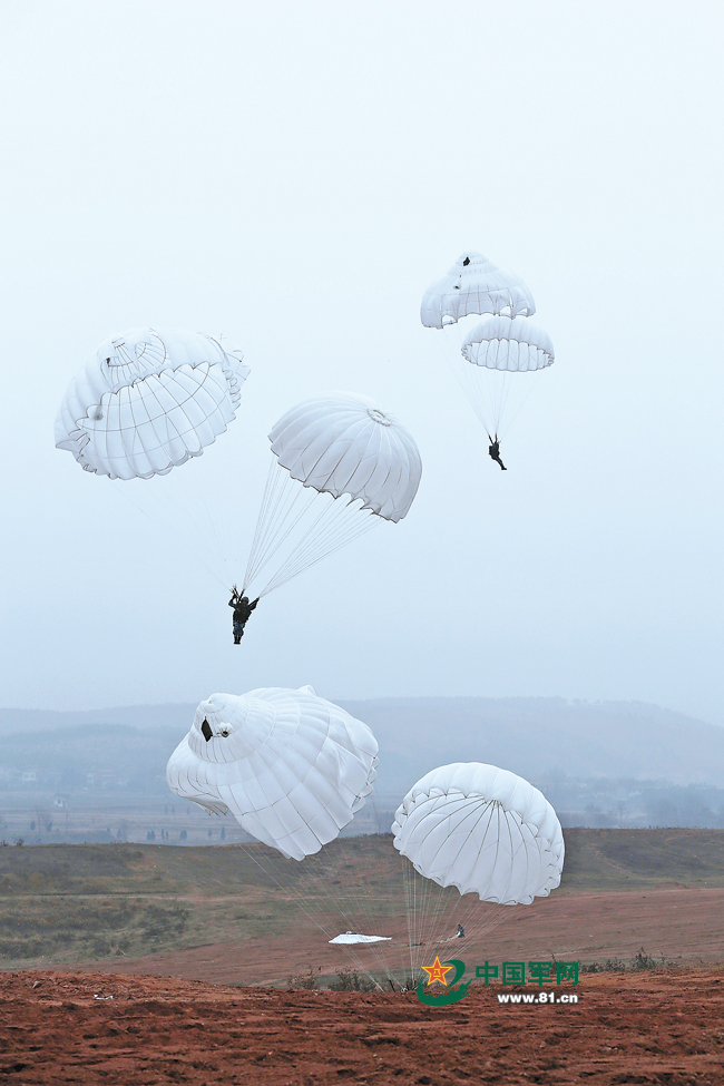 空降兵某师500新兵完成首跳 朵朵伞花绽放空中
