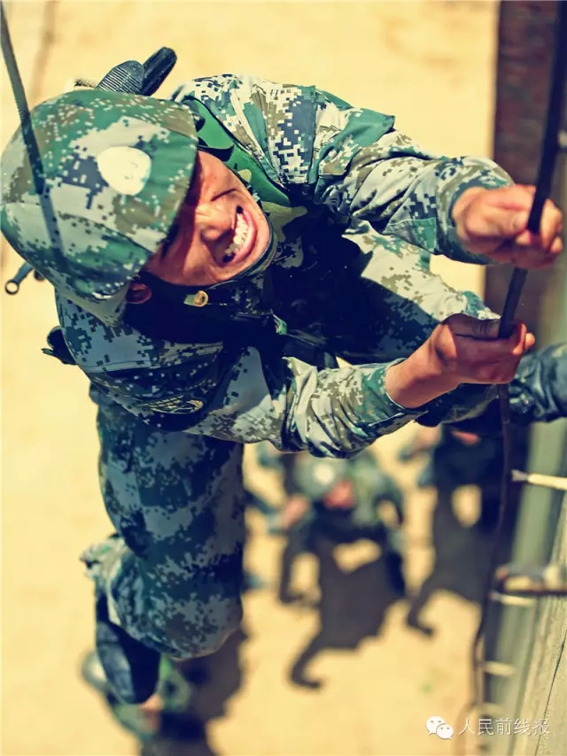 ★事件:某装甲旅班长王巍正为战士们演示利用避雷针进行墙体攀岩。