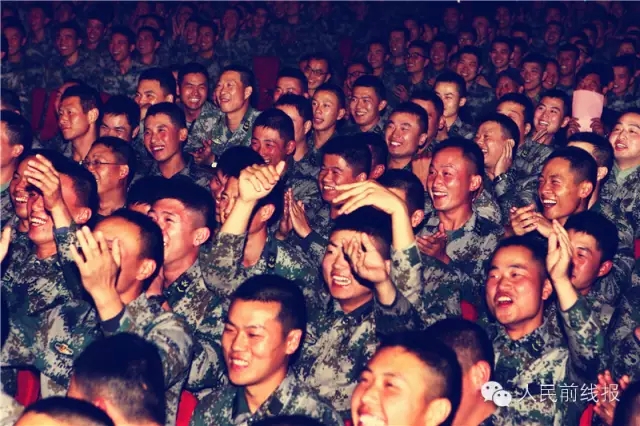 ★事件:浙江省军区演出队来旅慰问演出,官兵们观看战士被邀请上舞台即兴表演《小苹果》。喜笑颜开,放松紧张的训练心情。