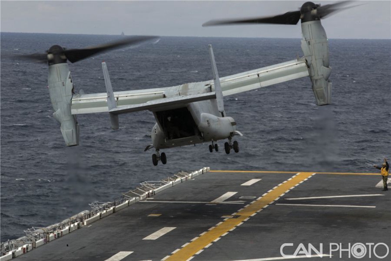 美CH-53E“超级种马”在航空母舰上进行甲板两栖运动