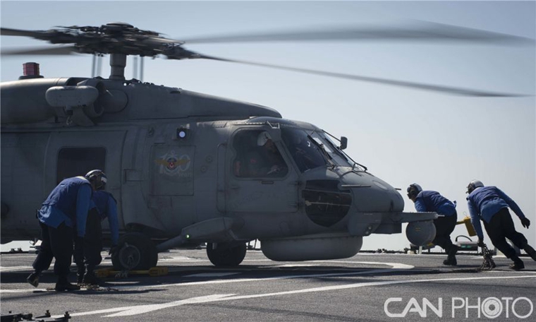 美军驱逐舰现身地中海 直升机甲板升空
