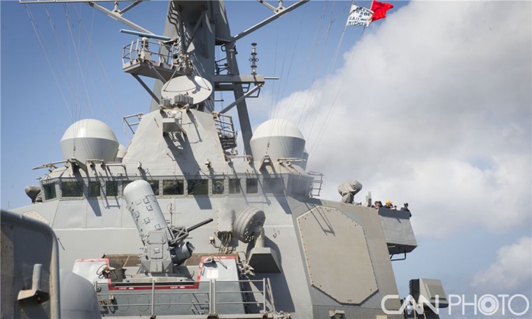 直击:美军E-2C鹰眼预警机在航空母舰上起飞