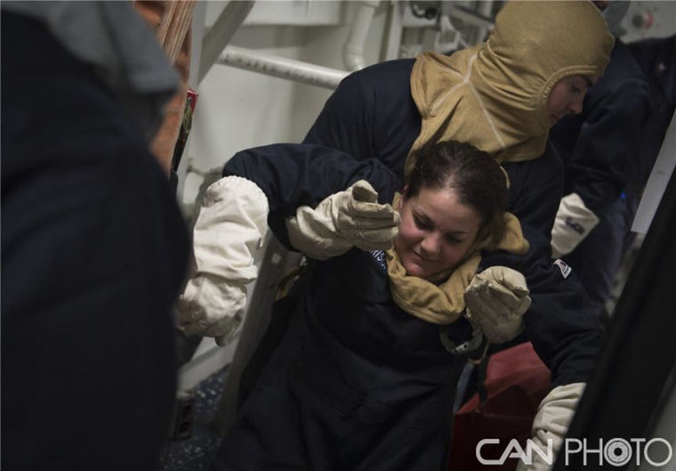 直击:美军E-2C鹰眼预警机在航空母舰上起飞