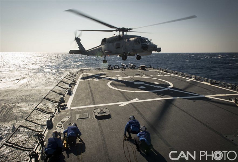 美军驱逐舰现身地中海 直升机甲板升空
