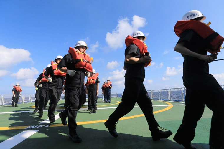 我国最先进的大型巡航救助船“海巡01”在南海演练
