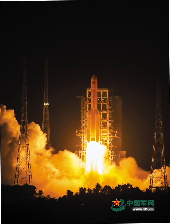 11月3日20时43分,我国首枚大型运载火箭长征五号在中国文昌航天发射场点火升空。