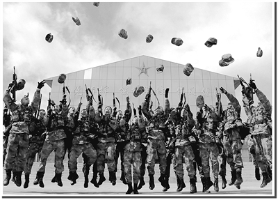 上图:3月6日,西藏那曲军分区新战士打靶归来留影。 陈 严摄