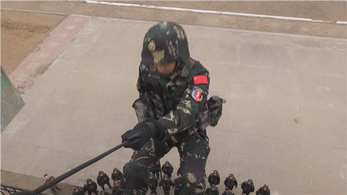 没有过硬军事素质,怎么敢说“看我的”?武仲良跟特战队员比拼索降。