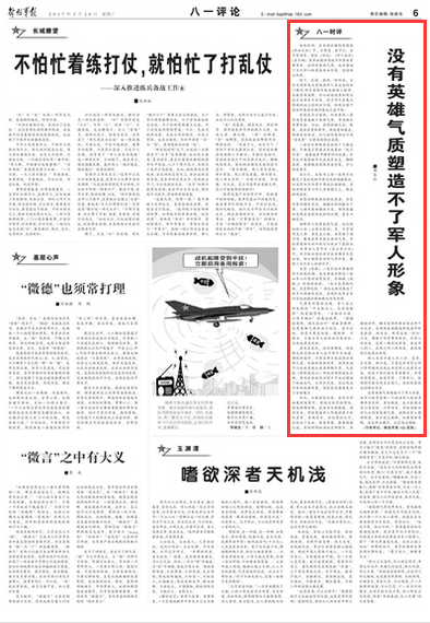 没有英雄气质塑造不了军人形象。虽然不能苛求每一个扮演军人的演员都浑身是胆、身怀绝技,也不能要求其以身试镜、以命演出,但扮演铁血军人必须有英雄气质,演绎出军人精神特质,虽非武艺超群,但要有板有眼,这是职业操守,也是观众期盼。