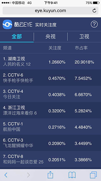 由最高人民检察院影视中心、中共江苏省委宣传部、中央军委后勤保障部金盾影视中心、湖南广播电视台、天津嘉会文化传媒有限公司、北京正和顺文化传媒有限公司、上海利达影业有限公司、大盛国际传媒集团有限公司、凤凰传奇影业有限公司、弘道影业有限公司联合出品的反腐题材电视连续剧《人民的名义》自3月28日起登陆湖南卫视金鹰独播剧场以来,持续保持同时段全国收视率第一,在昨晚的播出时段酷云EYE市场占有率更是高达20%多,引发各大主流媒体争相报道。
