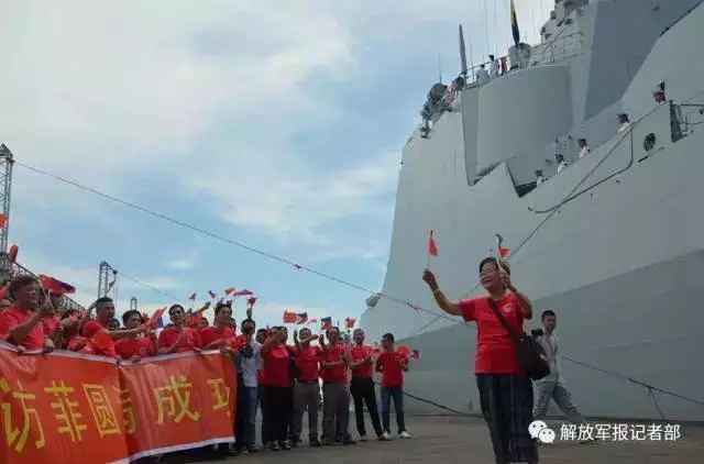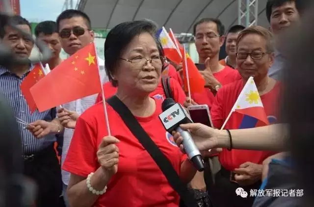 记者在现场看到,到码头为我海军舰艇编队送行的华人,手举横幅放声高唱《歌唱祖国》。今年78岁、祖籍福建厦门的在菲42年老华侨黄美丽女士主动在人群前领唱指挥,脸上溢满了对祖国的思念和对海军舰艇官兵的依依不舍。她挥舞着中菲两国国旗对记者说,能在祖国亲人面前唱响《歌唱祖国》,内心非常激动,在异国的日子里,心里始终忘不了祖国的大好河山和父老乡亲,祝愿我们的祖国永远富强,人民永远幸福。