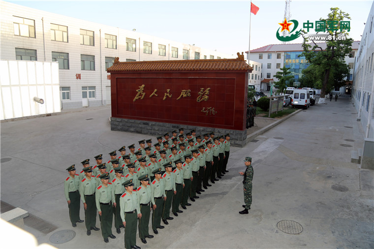 6:00,中队长金岩松传达执勤任务,给执勤哨兵强调纪律提出具体要求。