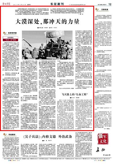 今天,我们走近辉耀史册的“两弹一星”精神。50多年来,这一精神支撑起众多让全世界瞩目、让民族挺直脊梁的伟大成就,也凝结着一代代航天人的别样人生。那些面孔,那些背影,那些坚守,那些忠诚,那些付出……点点滴滴都如清泉般融进了茫茫戈壁,构筑起巴丹吉林沙漠里永远的精神绿洲。这片绿洲属于航天人,也属于我们伟大的国家民族和军队。这片绿洲滋润红柳成行,孕育青春华彩,更让一种力量不断积蓄、不断强劲,在浩宇苍穹中不断划出新的历史印痕。