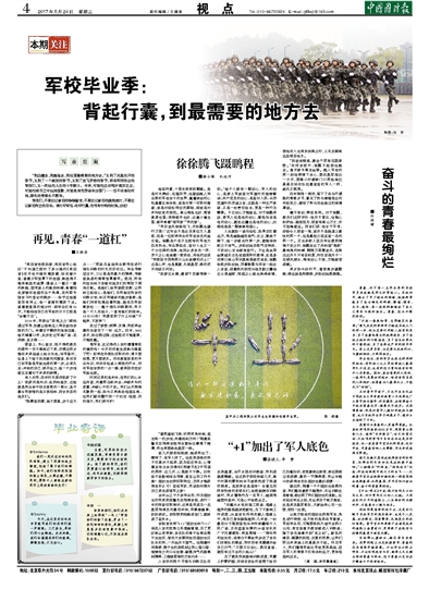 “到边疆去,到海岛去,到祖国最需要的地方去。”又到了凤凰花开的季节,又到了一个离别的季节,又到了放飞梦想的季节,即将军校毕业的学员们,又一次站在人生的十字路口。未来,可能在边关哨所建功立业,可能在城市之中站岗值勤,可能是肩负使命走出国门……但不论身处何地,绿色的青春永不散场。