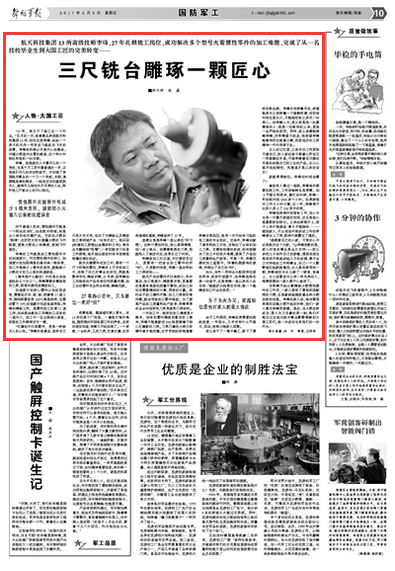 如今,当年一同毕业分配到单位里的同学,或改行或提升,但李峰选择的是一份坚守,这是李峰一直以来的人生目标:“练就炉火纯青的本领,做一个超精密加工行业的良匠!”