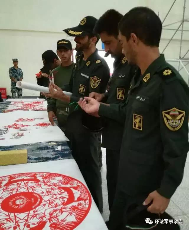 伊朗队员对中国传统艺术剪纸很感兴趣。