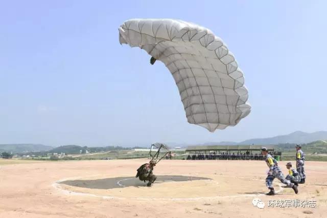 定点跳伞比赛中,摩洛哥参赛队员着陆。陈立春摄
