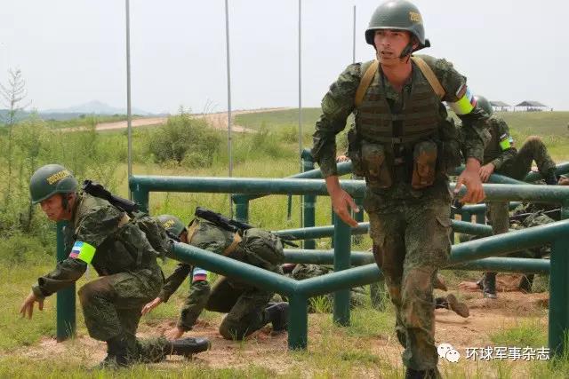 俄罗斯队员快速通过“鹿砦”障碍。郭明明摄