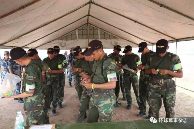 委内瑞拉队员到达中国比较晚,很遗憾没能参加定点跳伞的比赛。巧合的是,在“班排定位赛”现场,得知委内瑞拉领队阿伊杜尼曾是该课目裁判李奎上尉的跳伞教官,李奎曾在委内瑞拉猎人学校留学,所以现场李裁判就当起了记者们的西班牙语翻译,领队阿伊杜尼说,这次来参加比赛各方面都很好,就是天气太热,他喜欢吃中国的面条。